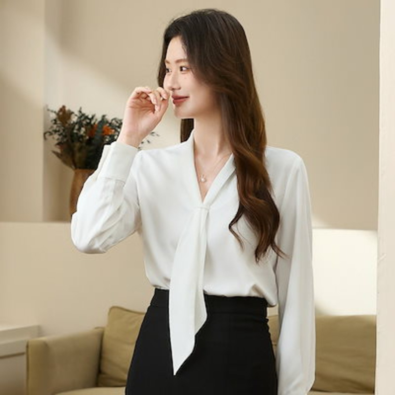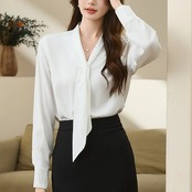 秋服 シアーシャツ 長袖 柔軟ダウン 通勤 Vネック長袖 シャツキャリアネクタイ 白 シャツ ブラウス シャツ レディース レディース オフィス