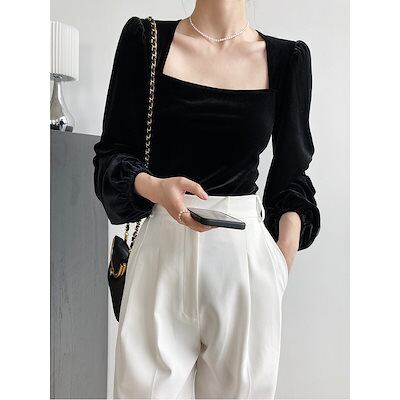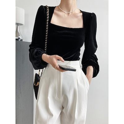 長袖ブラウス シャツ レディース スクエアネック 長袖ブラウス シャツ レディース ゴールドベルベット レディース ブラウス シャツ レディース 着痩せ ブラウス シャツ レディース
