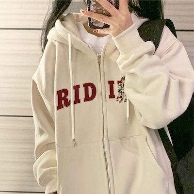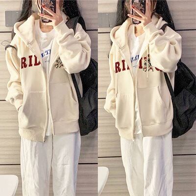春秋新作 韓国 パーカー スウェット ファスナー付き衛衣 コートゆったり服 女性 長袖 ゆったりサイズ衛衣カップル 上着 女性