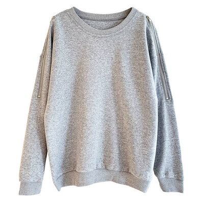 韓国 パーカージップオフショルダースウェット春薄手長袖ルーズ長袖トップススウェット