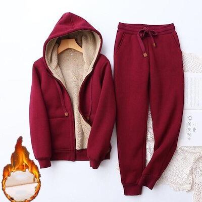 【本日限定】レディースジャージ ヨガウェア上下セット アップ裏起毛ルームウェアジップアップIパーカー部屋着カジュアルおしゃれかわいい秋冬トレーナートレーニングウェアスウェットセット厚防寒冬修学旅行運動