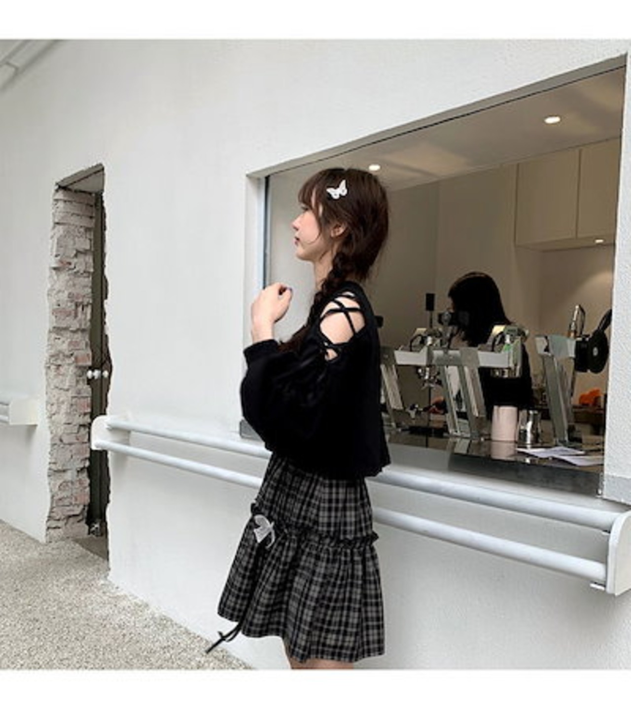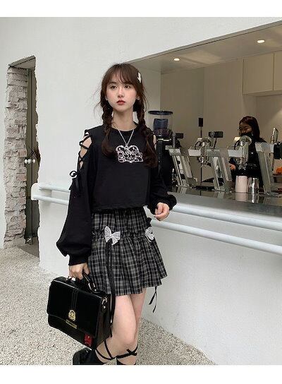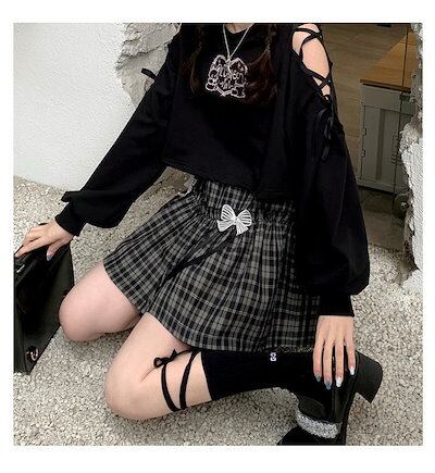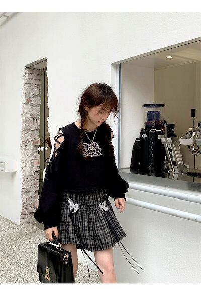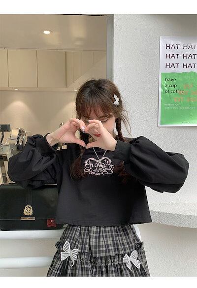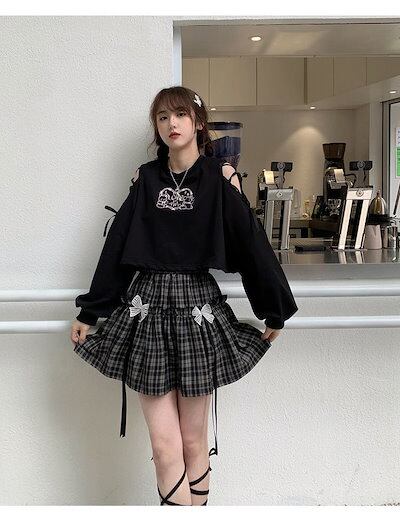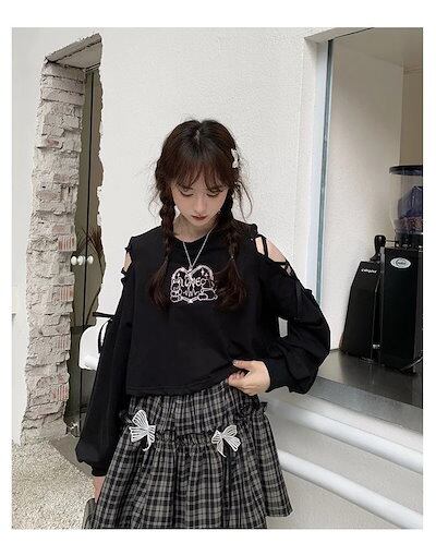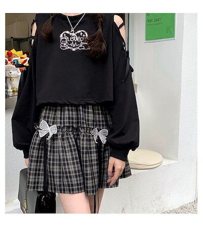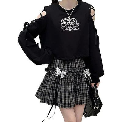 パーカー レディース 病みかわいい 肩出し リボン 兎柄 地雷系 ファッション 長袖 ショート トップス 原宿系 サブカル系 韓国風 おしゃれ 春 夏 秋