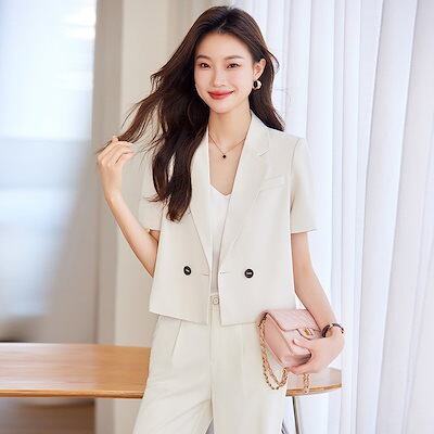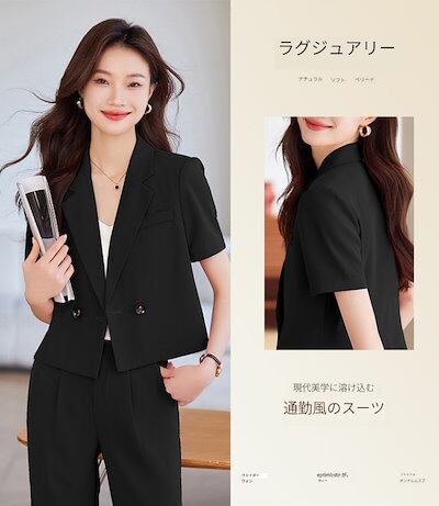 2024新作 夏 シフォン 半袖 スーツ 卒業式 ママ スーツ セットアップ 二点セット レディース スーツセット セットアップ ママスーツ 卒業式パンツスーツ スーツジャケット