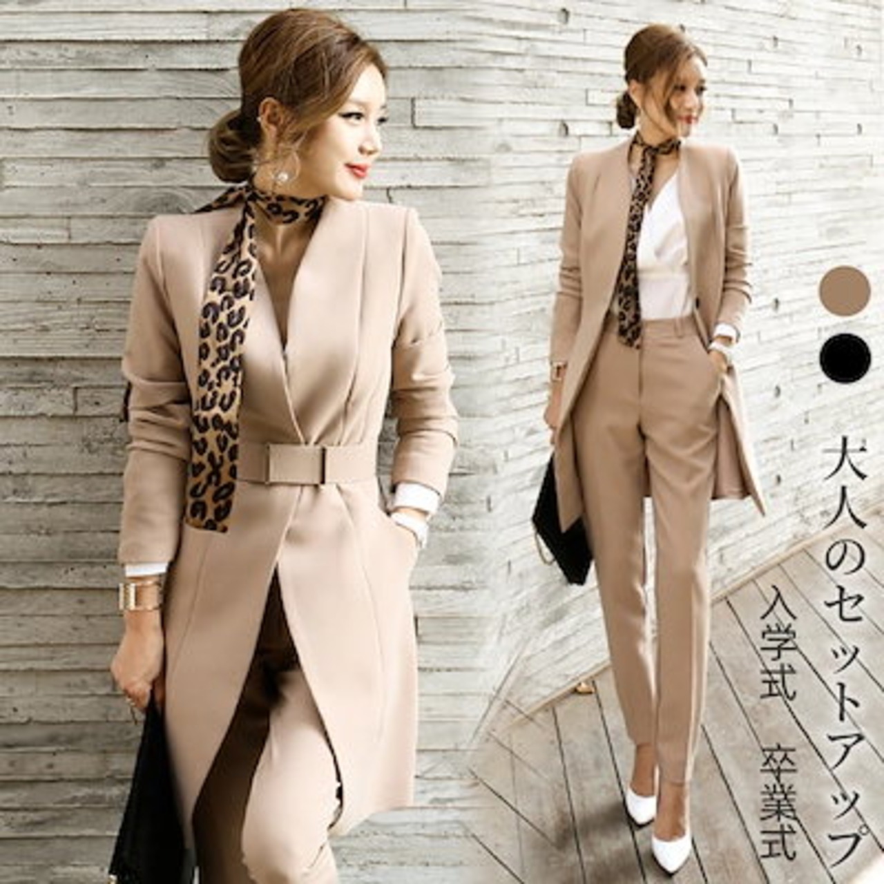 ママ スーツセットアップ 気質 韓国ファッション セミロング 春アウター スーツセット/ 卒業式パンツスーツ スーツジャケット 入園式 入学式 卒園式