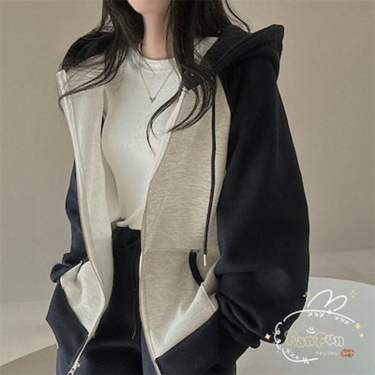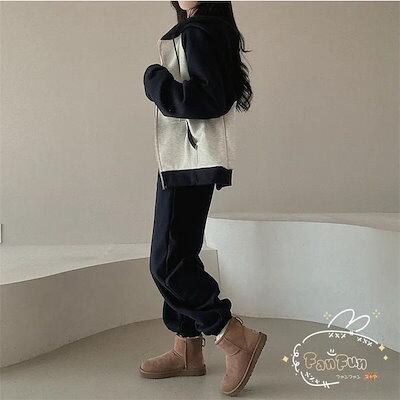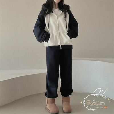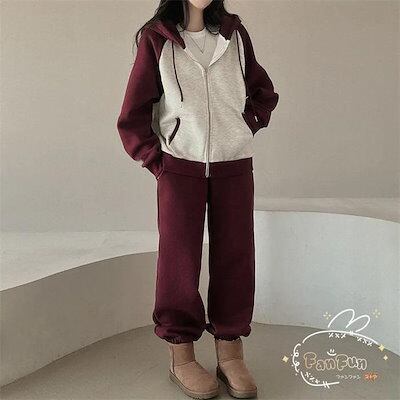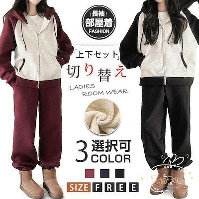 上下セット レディース セットアップ スウェット 切り替え ジップアップ フード付き 長袖 パーカー ジョガーパンツ ロングパンツ