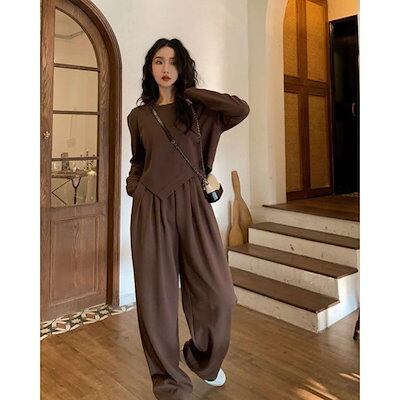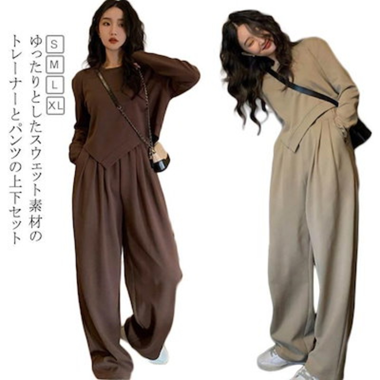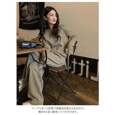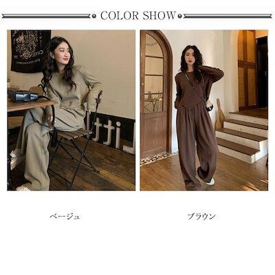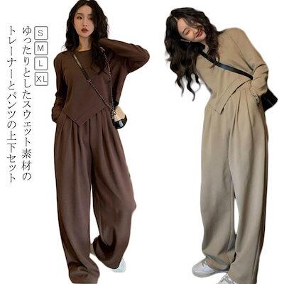 トレーナー 上下 セットアップ ジャージ おしゃれ レディーズ ロングパンツ 2点セット スウェット スウェット トップス ワイドパンツ ルームウェア