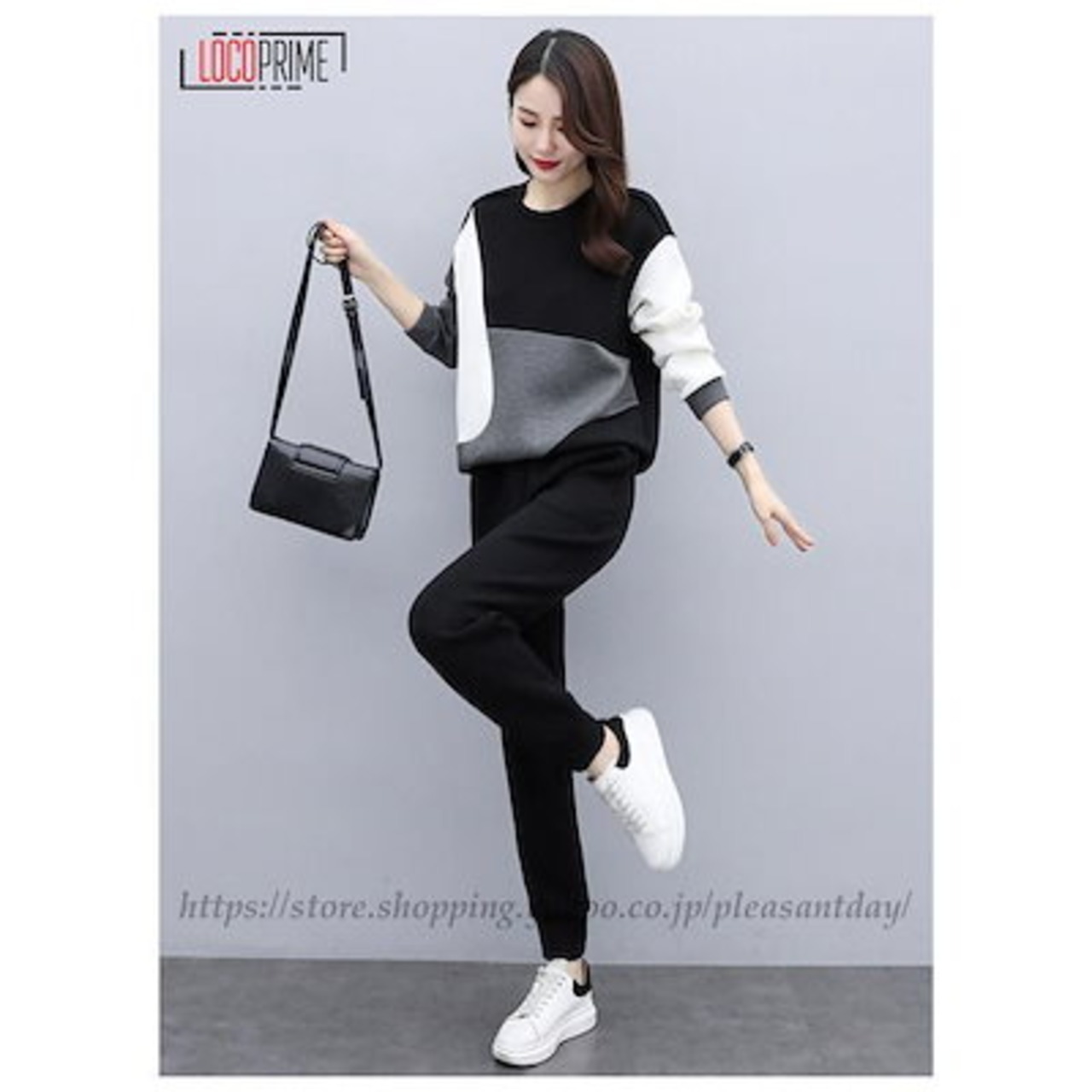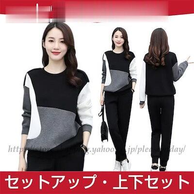 セットアップ スウェット レディース 運動着 部屋着 韓国風 ジャージ 上下セット 着痩せ 体型カバー ジョガーパンツ 20代 30代 40代 50代 大きいサイズ