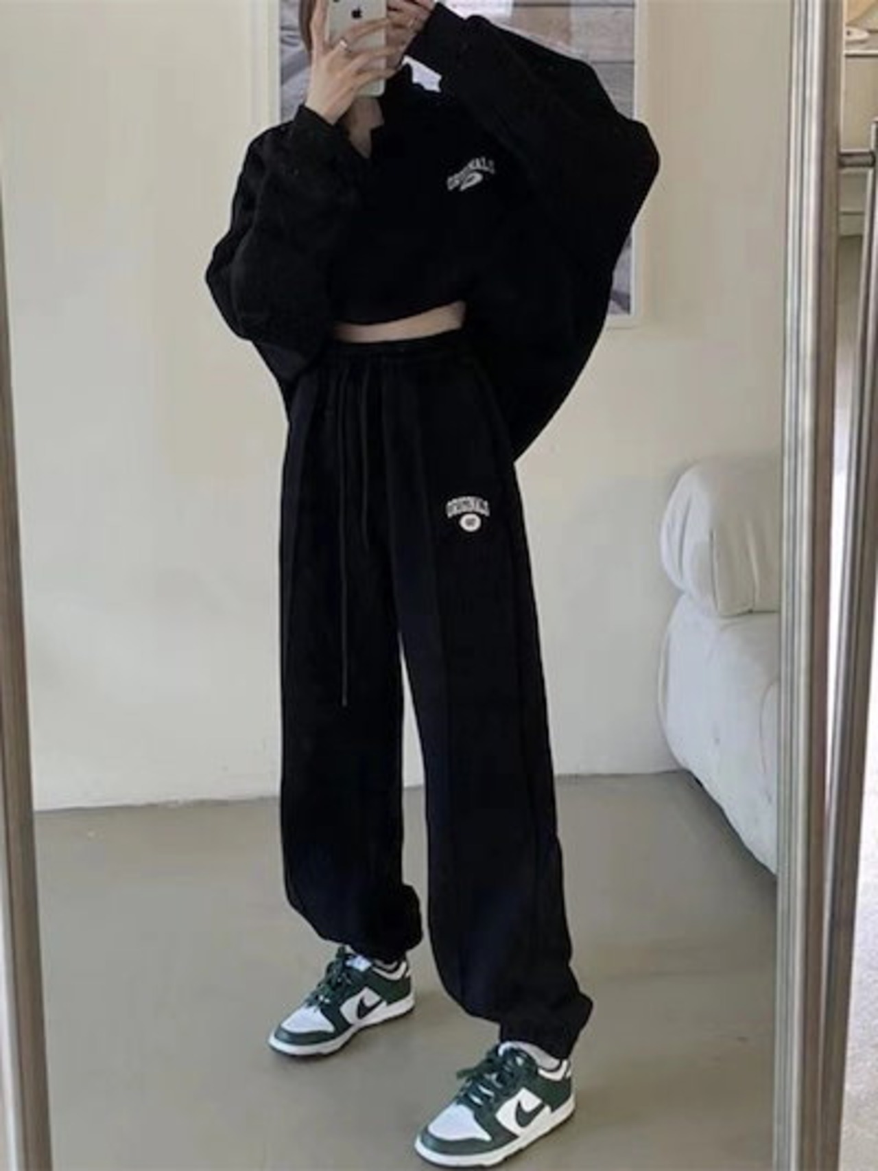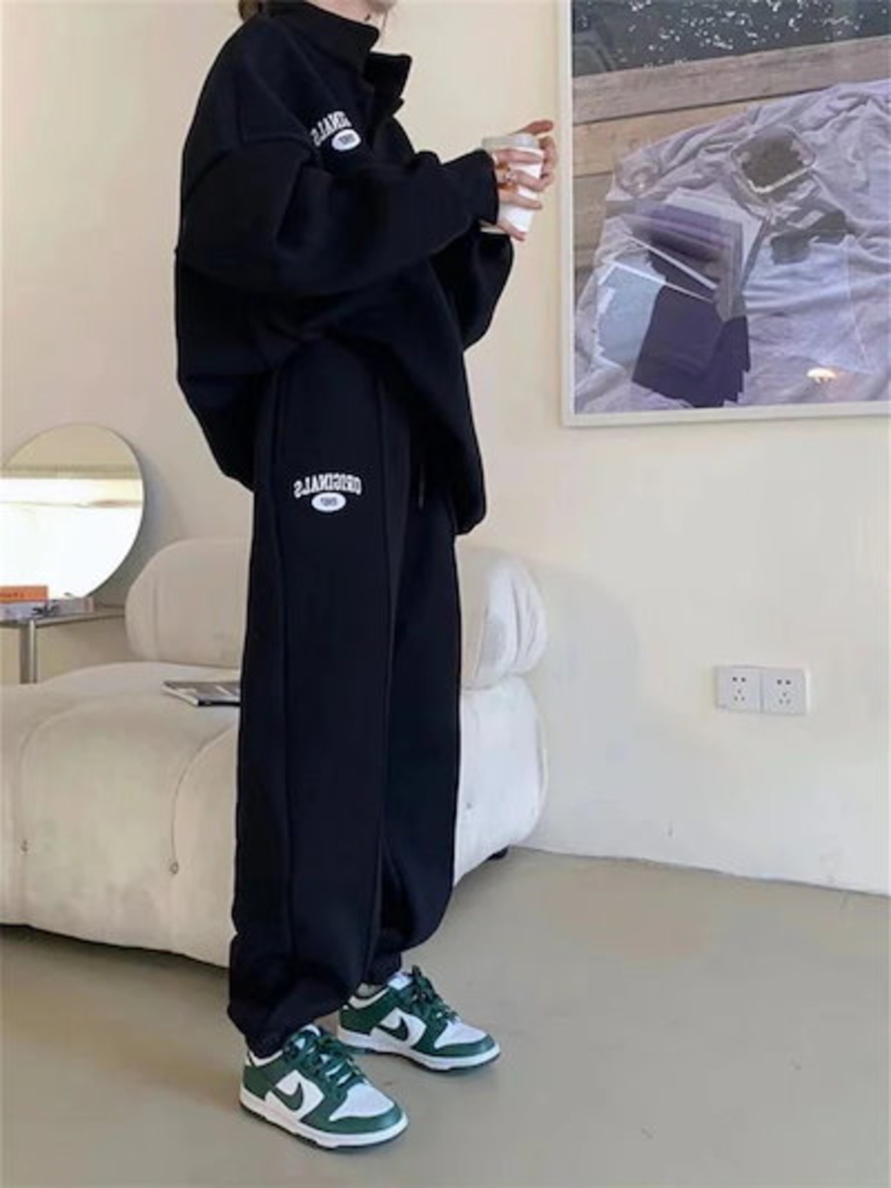 2023ブランドスウェットセットアップ上下二点長袖立ち襟アウター無地スウェットパンツ韓国ファッションレディーストレーニングウェア レディーススポーツウェアレディース