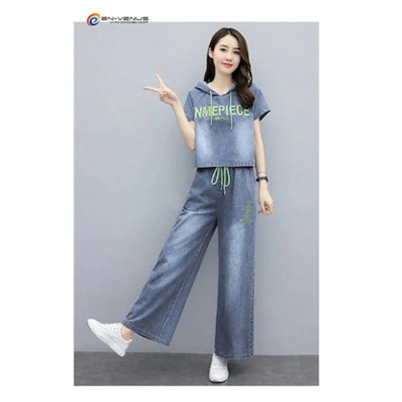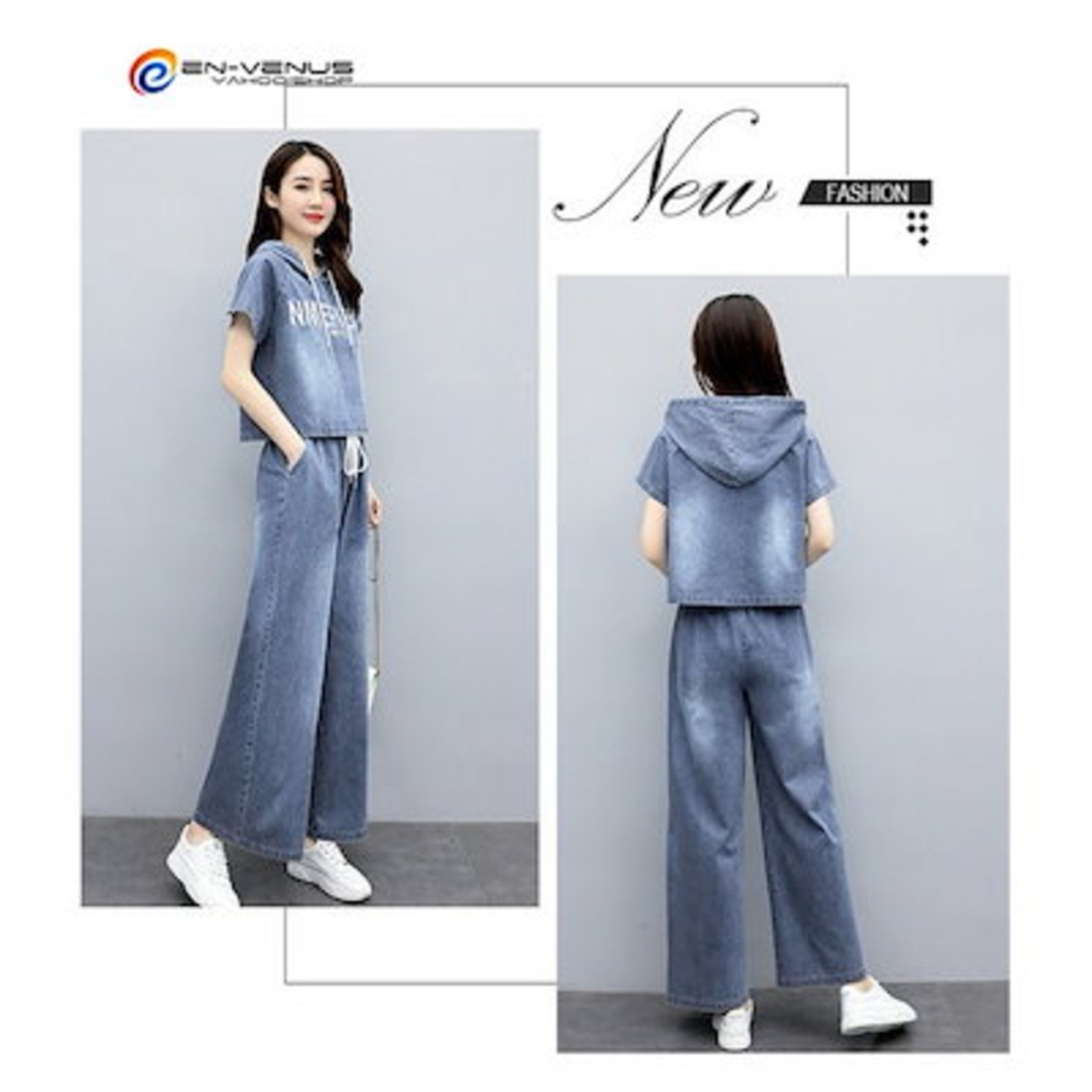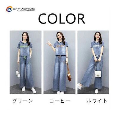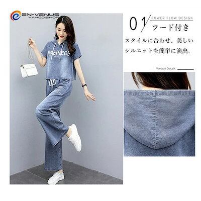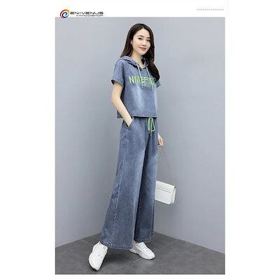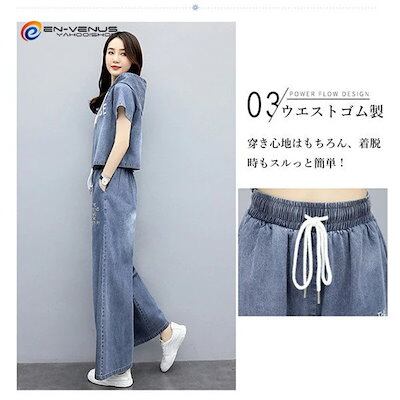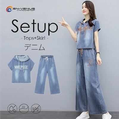 セットアップ レディース 上下セット 春夏 上下セット デニム パーカー ガウチョパンツ 着痩せ おしゃれ 通勤 通学 夏用 大きいサイズ 送料無料