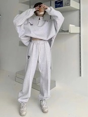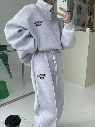 2024ブランドスウェットセットアップ上下二点長袖立ち襟アウター無地スウェットパンツ韓国ファッションレディーストレーニングウェア レディーススポーツウェアレディース