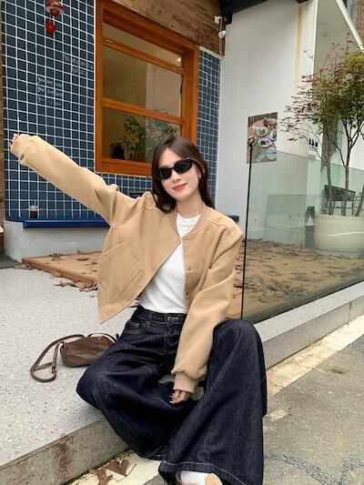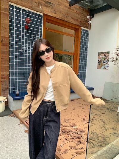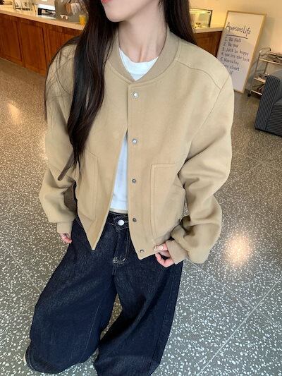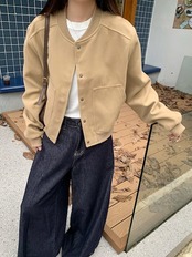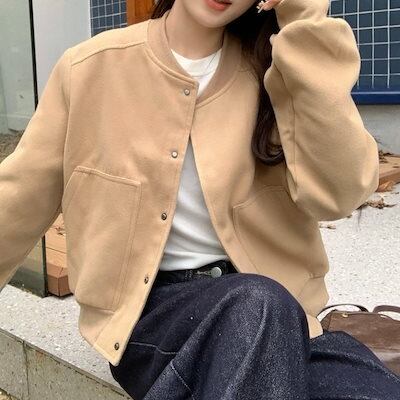 2024 秋冬アウター ブルゾン ボタン 長袖 ポケット 秋 茶色 ブラウン ベージュ おしゃれ かわいい 韓国ファッション レディース お出かけ