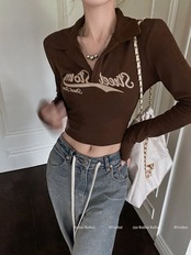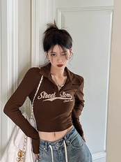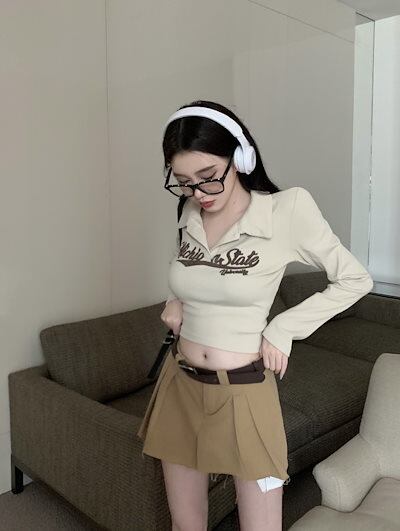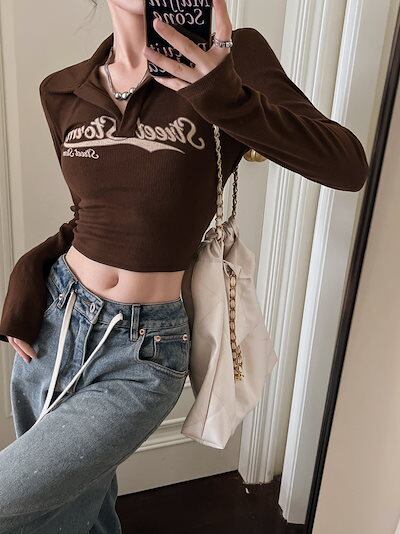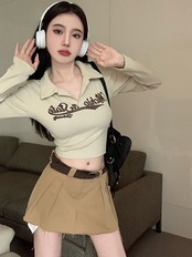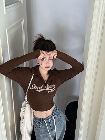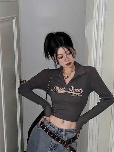2024秋 長袖 Tシャツ ショート丈 カットソー トップス カジュアル 配色韓国系ストリートへそ出しK-POPタイトネックスリーブ 肌見せ T ファッションレディース かわいいハーフ衣装風冬トップス