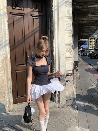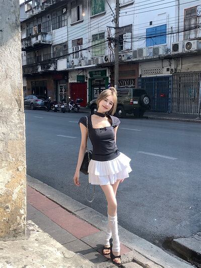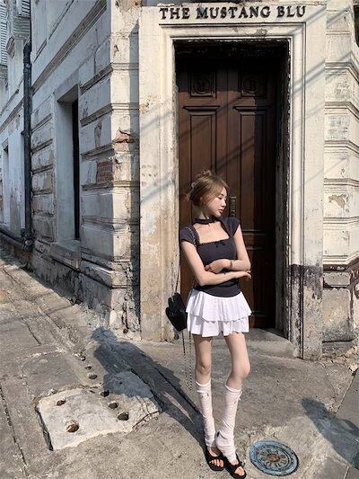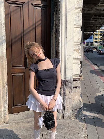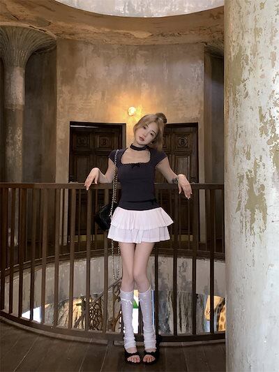 2024秋 甘く tシャツ 長袖 トップスレディース レイヤードファッション系重ね着風カットソーインナーショート丈タイトフィット T 冬春 コーデきれいめ フェミニン上下セットアップフレンチ ネック