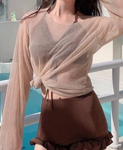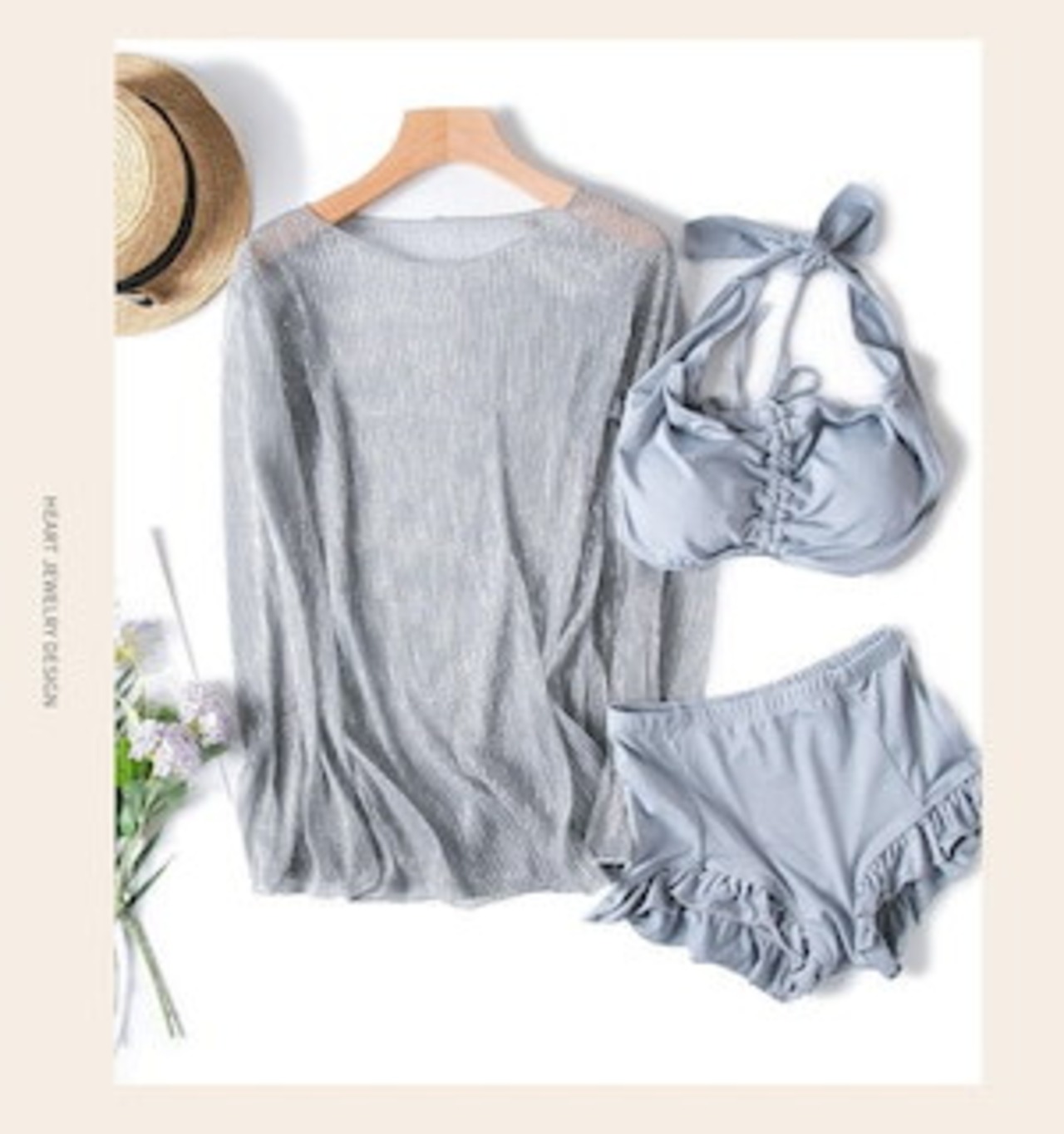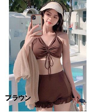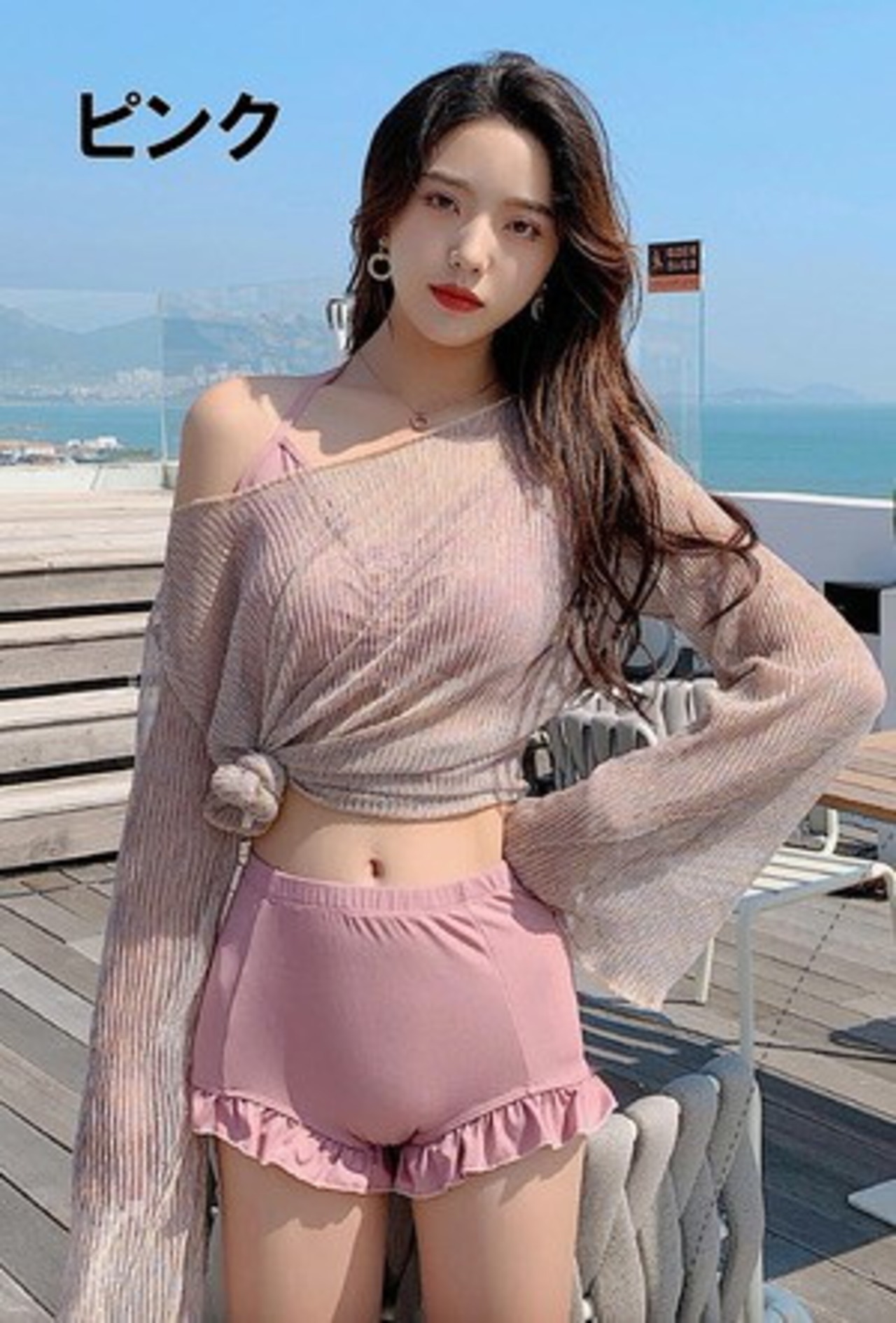 水着 レディース 体型カバー ビキニ 3点セット かわいい カジュアル 長袖 メッシュ Tシャツ キャミソール ショートパンツ タンキニ スポーティー 韓国 水着 ハイウエスト トップス スイムウェア