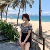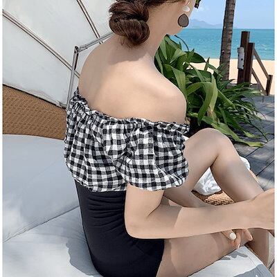 2024 春夏 露出を控えた ファッション 切り替え ビキニ スイムウェア付き タンキニセパレート スタイルアップ 海プール可愛い海水浴花 大人女子水着 レディース スリーブフレンチ