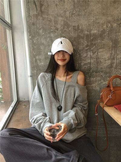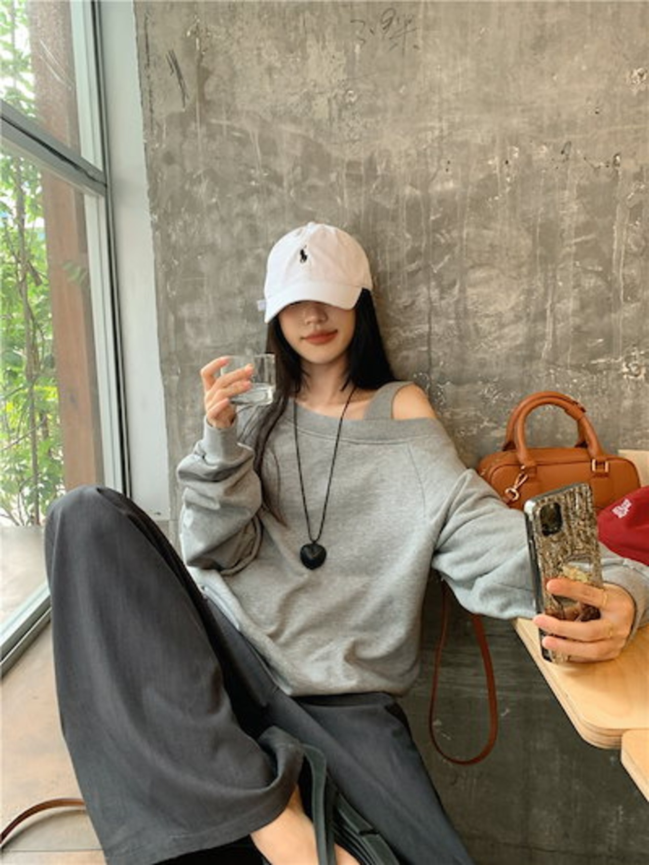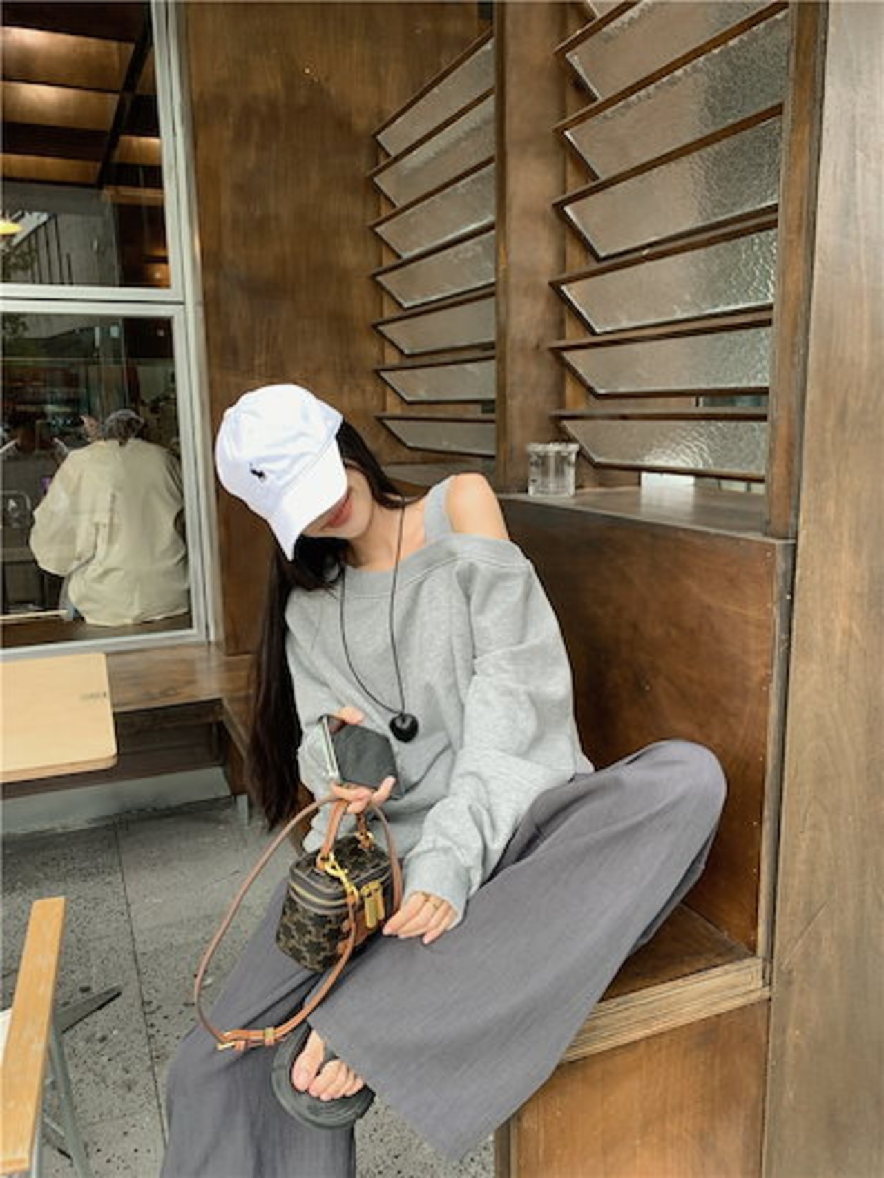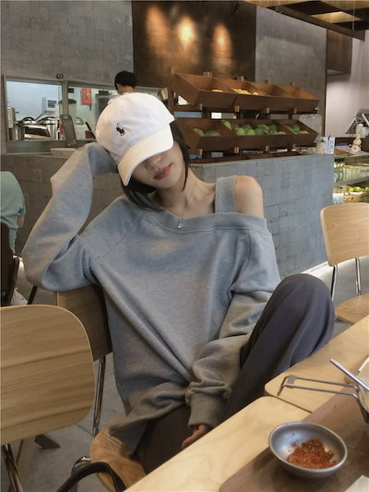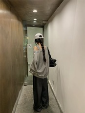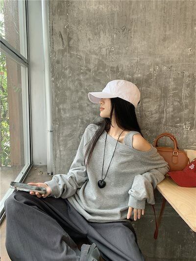 2024 秋冬 トップス 長袖 かわいいラウンドネック Tシャツ 肌見せ レディース 韓国風 ルーズ ゆったり 無地 カジュアル おしゃれサイズ シルエットファッション系コーデ衣装お出かけ