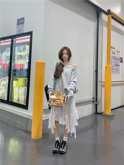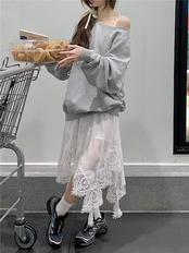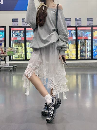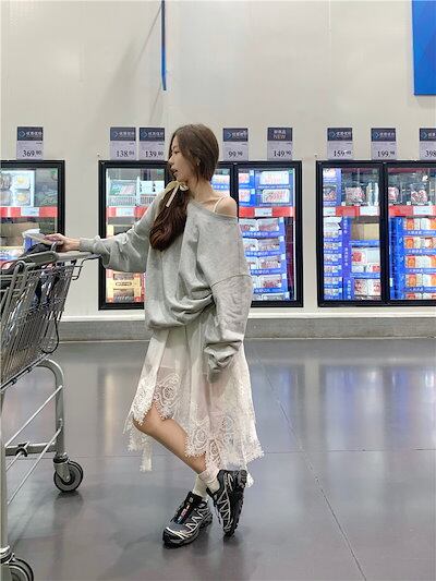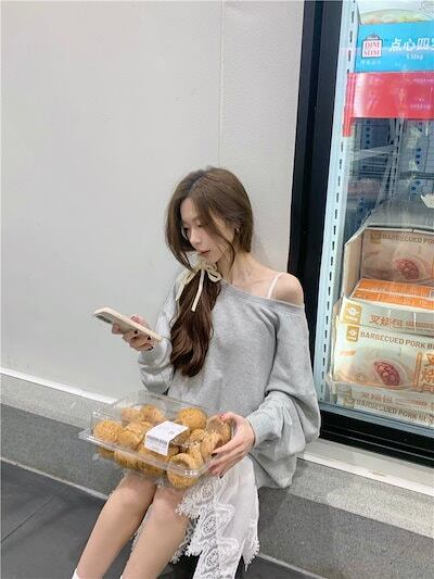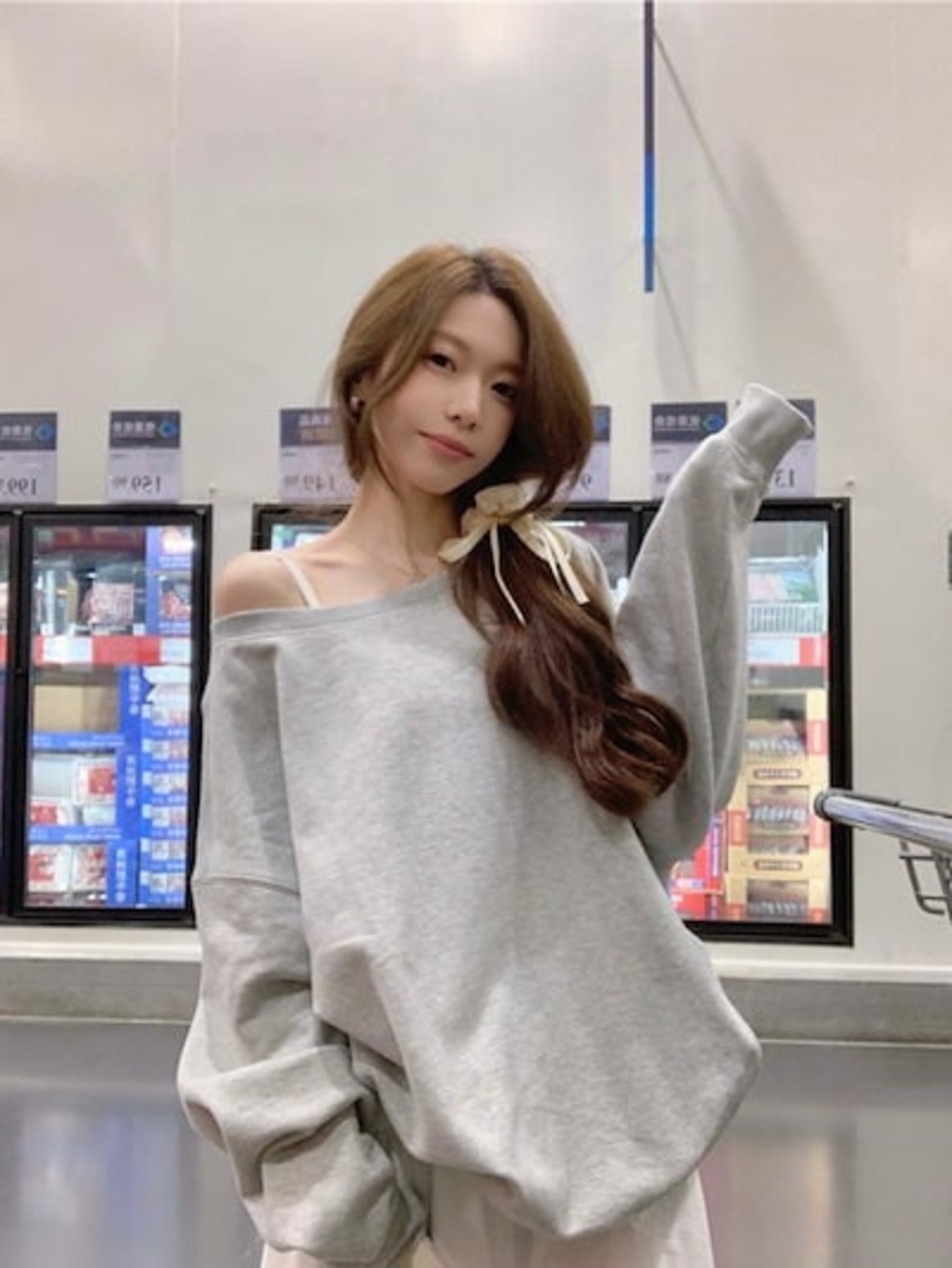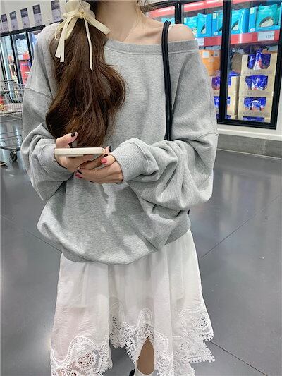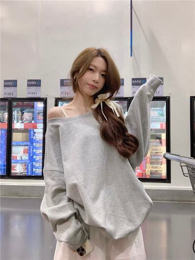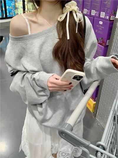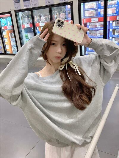 2024 秋冬 トップス 長袖 かわいいラウンドネック Tシャツ 肌見せ レディース 韓国風 ルーズ ゆったり 無地 カジュアル おしゃれサイズ シルエットファッション系コーデ衣装お出かけ4