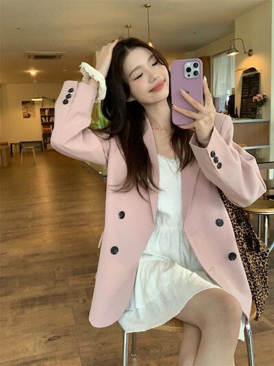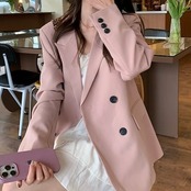 2024秋冬トップス ジャケット 長袖 ボタン テーラードカラー ゆったり 細見え 秋 ピンク おしゃれ かわいい ガーリー キュート 甘め 韓国ファッション レディース お出かけ