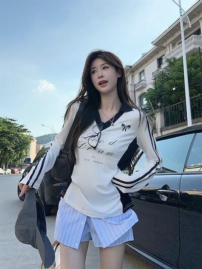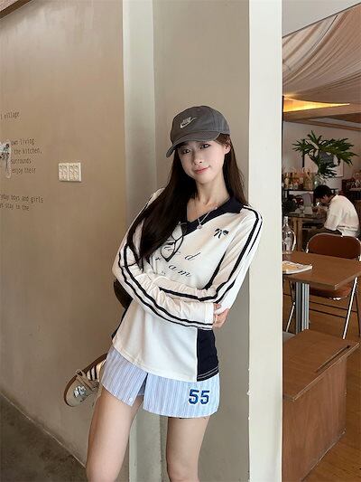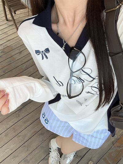 2024秋 長袖 Tシャツ ショート丈 カットソー トップス カジュアル 配色 韓国系ストリート ロゴ へそ出し タイトネックスリーブ 肌見せ T ファッションレディース かわいい風冬トップス
