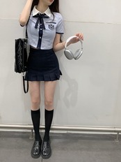 韓国 財閥お嬢さん 甘辛MIX セットアップ シャツ スカート ネクタイ レディース jk カジュアル アーガイル 韓国系セットアップ スカートスーツ 秋冬