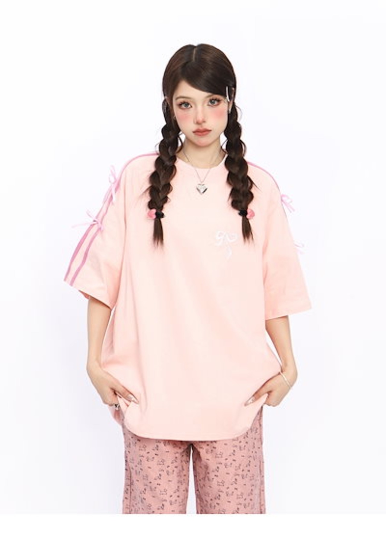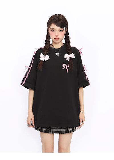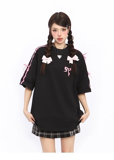 2024夏 韓国可愛い風トップス Tシャツ ファッション系 半袖 スリムフィット サイド ペイントシルエット ゆったり丈 ロングレディースサイズ韓国Vネックおしゃれカジュアルメンズライク T