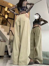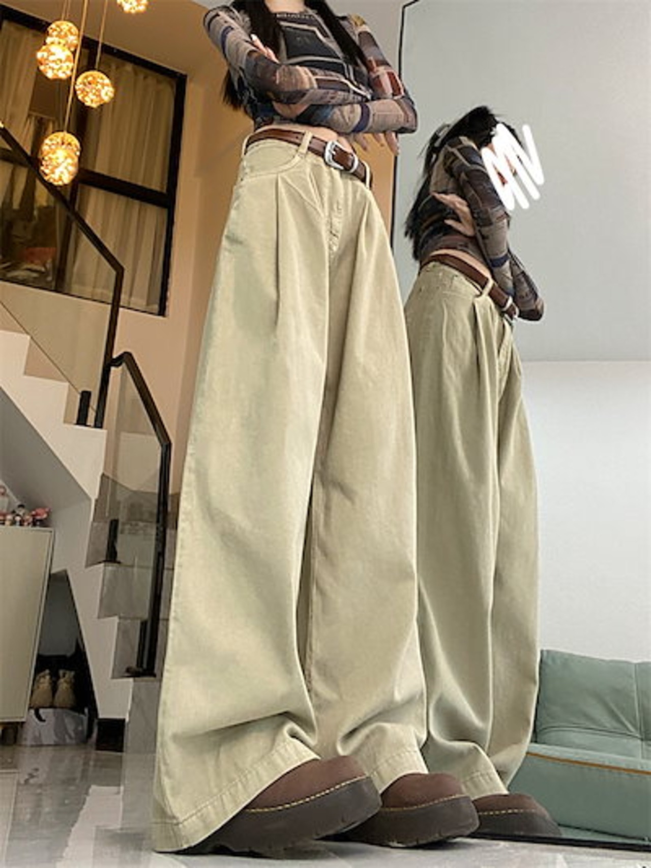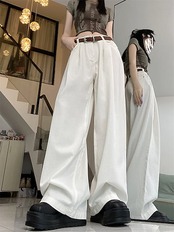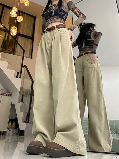 2024 パンツ ロング丈 ハイウエスト 美脚効果 脚長効果 細見え 白 おしゃれ かわいい 甘め 韓国系ファッション レディース お出かけ 秋冬