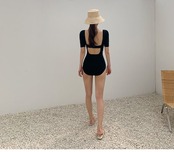 2024 春夏 露出を控えた ファッション 切り替え ビキニ スイムウェア付き タンキニセパレート スタイルアップ 海プール可愛い海水浴花 大人女子水着 レディースネックスリーブフレンチ