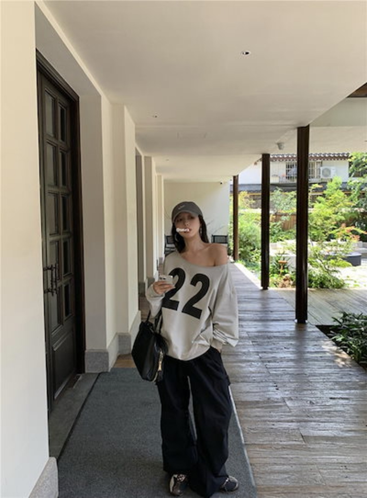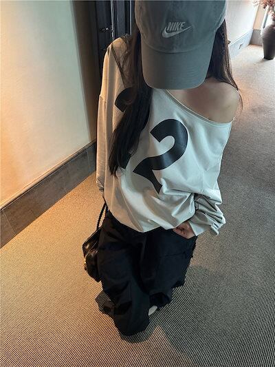 2024 秋冬トップス 長袖 数字 22 肌見せ ゆったり 細見え 秋冬 グレー おしゃれ かわいい 韓国系ファッション レディース お出かけ