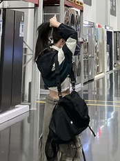 2024夏 韓国 BF風 スタイルアップ シルエット フーディー ロゴ ブルゾン アウター フード付き レディース パーカー サイズ ゆったりライク カジュアル ストリー フル ファッショントラック