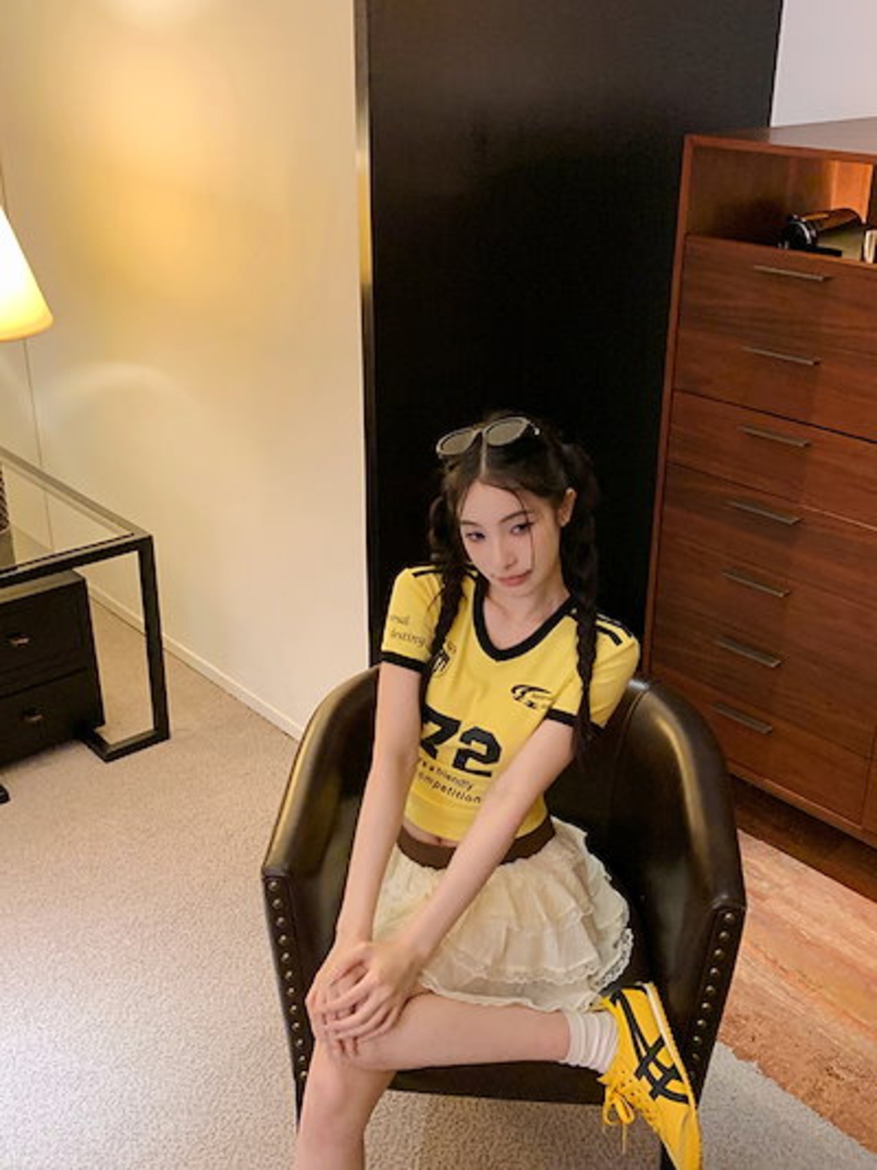2024 春夏トップス プリント半袖 Tシャツ 韓国 ラウンドネックロゴスリム 可愛い風へそ出し ショート おしゃれスリーブ カジュアルサイドコーデ丈 ファッション系レディースストリートお出かけ T