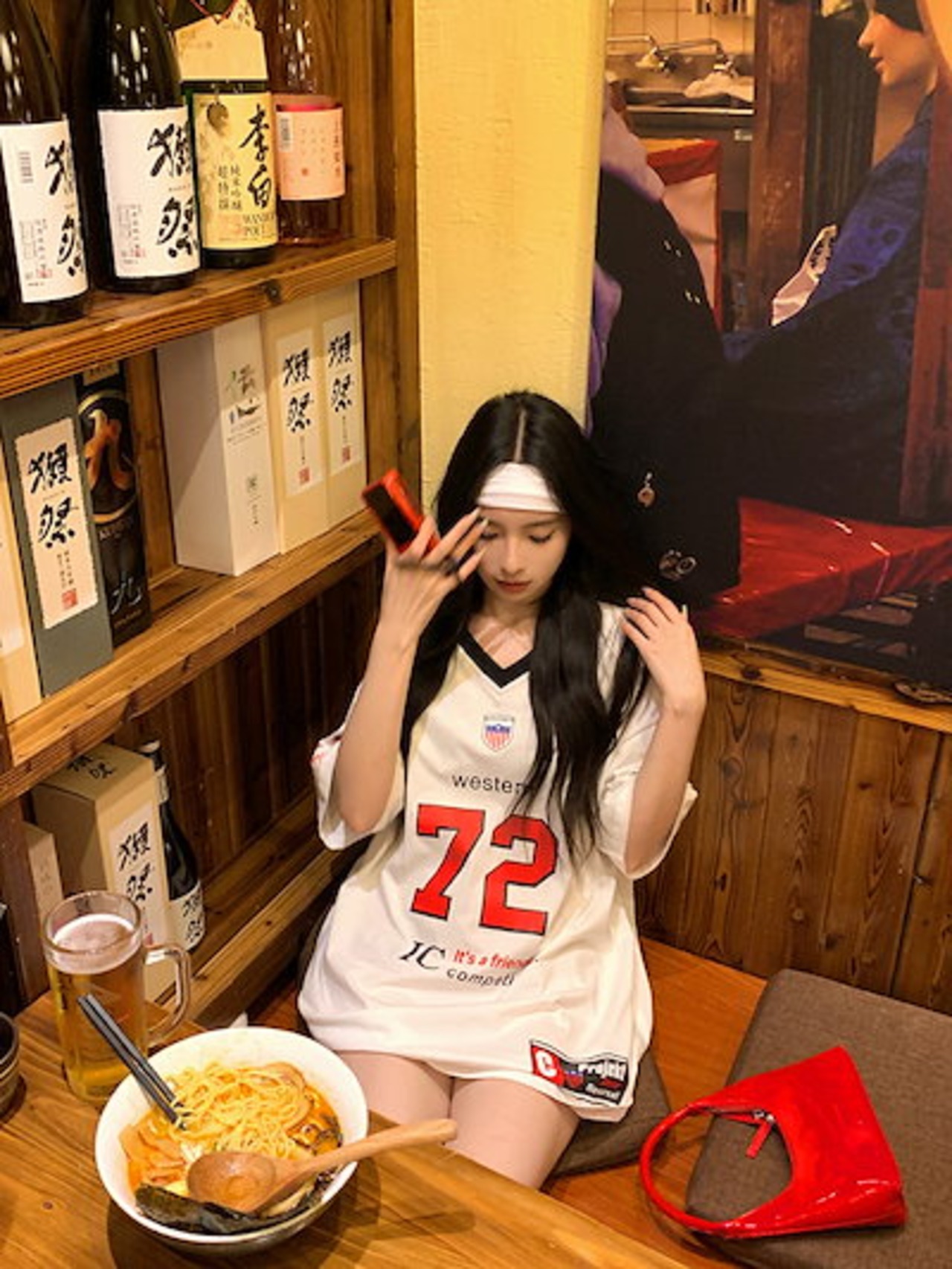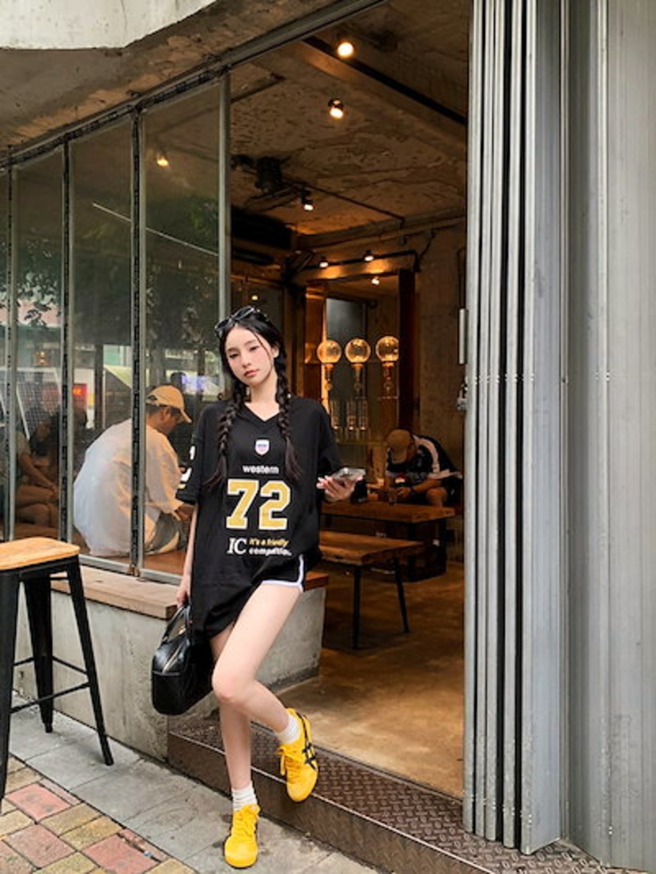 2024 夏 韓国可愛い風トップス Tシャツ ファッション 半袖 スリムフィット サイドペイントシルエットゆったり丈 休日レディースサイズ韓国Vネック おしゃれ カジュアル メンズライクフットシャツ