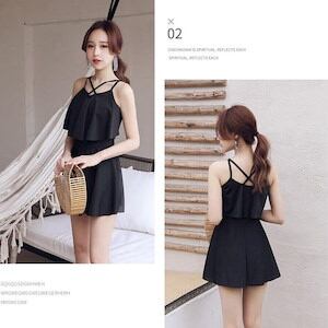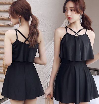 水着 スカート ピンク レッド ブラック クロスストラップ ラウンドネック 個性的 おしゃれ シック 大人カラー バックシャン 袖なし ワンピ 水着 華やか フェニン 背中空き カッコイイ 体型カバー