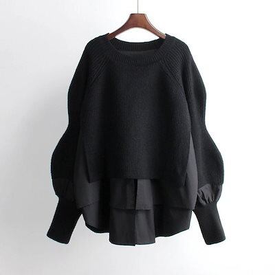 人気なリブニット ベーシックニット 韓国ファッション ニット秋冬 フェイクレイヤード 長袖 ニットトップス高級感 百掛け カジュアルセーター レディース 気質 通勤カシミヤタッチ