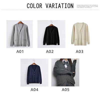 カーディガン レディース 長袖 通学 制服 Vネック 学生 事務服 オフィス 高校 看護師 介護 ポケットが飾り 無地 ショート丈 春 夏 秋 冬 羽織り
