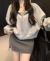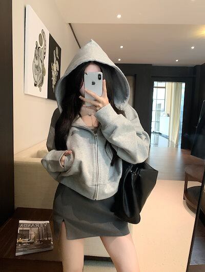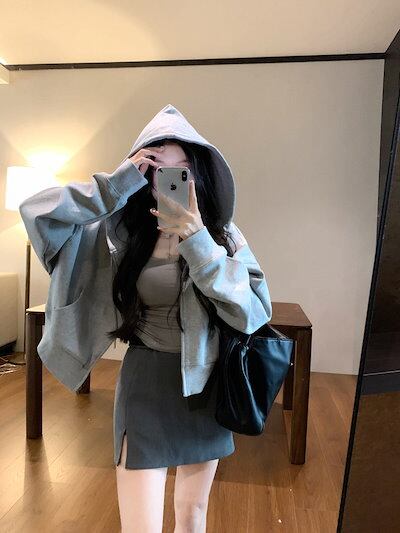 2024 秋冬トップスかわいいパーカー フード付き韓国風長袖ゆったり細見え白黒おしゃれレトロチャッシルエット甘め大人っぽ韓国フルサイズファッション系ルーズレディースサイドお出かけ学生通学トラック羽織り