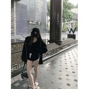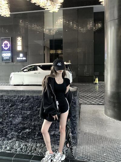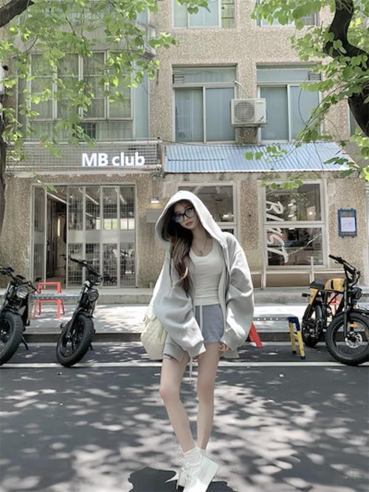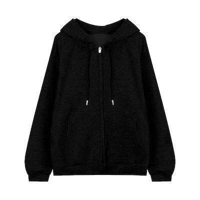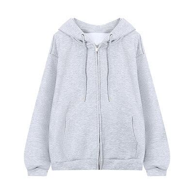 2024 秋冬 韓国 かわいい レディース 無地 フード付き長袖アウターレトロセット_白フーディーブルサイズ丈トップス春カジュアルスポーツファッション系通学学生袖お出かけアップシルエットトラック羽織り