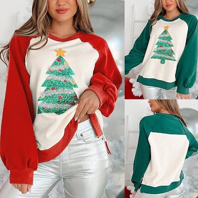 サンタコスプレ クリスマスツリー ビーズ ベルベット スウェット レディース スウェット 長袖 ルーズ トップス 秋冬 韓国