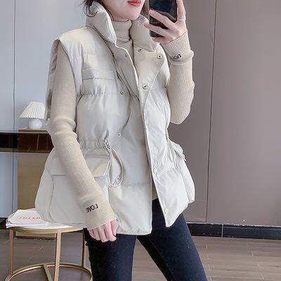 冬アウター 韓国ファッション中綿ジャケット極暖 ジャケットベストレディース 秋冬 厚手 アウターノースリーブ 厚手トップスシンプルダウンベスト ベスト レディース