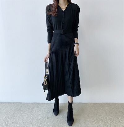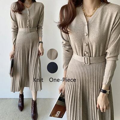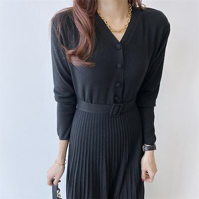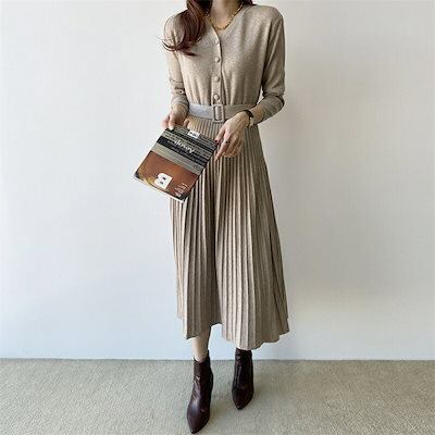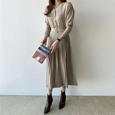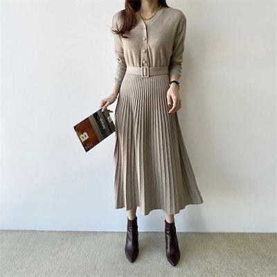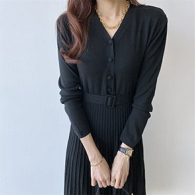 OL ロングワンピース Aラインワンピース 長袖 ニットソー ニットセーター ニットワンピース リブニット ロングワンピ ロング ニットワンピ ワンピース きれいめ Vネック カジュアル風 秋 レディ