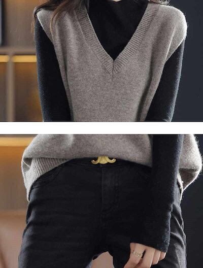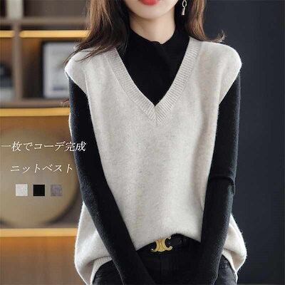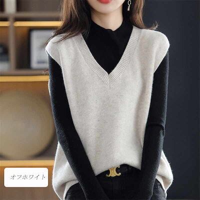 プルオーバー ベスト ノースリーブ トップス ストレッチ vネック ベスト カジュアル vネック 無地 ニット お洒落 レディース ニット 大きいサイズ ノースリーブ ニットセーター ゆったり セータ
