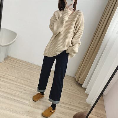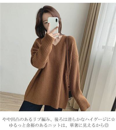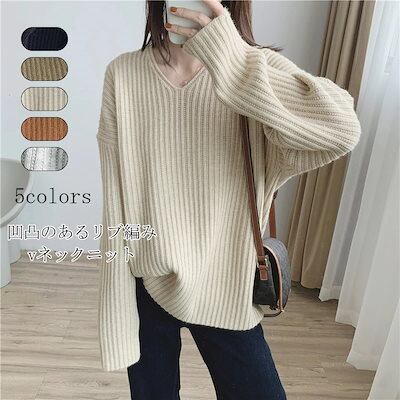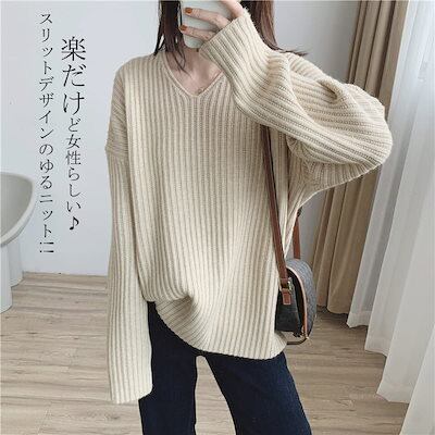 ニット vネック vネック vネックニット トップス カラーニット ロングニット 柔らかい 長袖 ニットセーター レディースニット セーター シンプル レディース ベーシック 長袖ニット 大きいサイズ