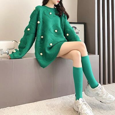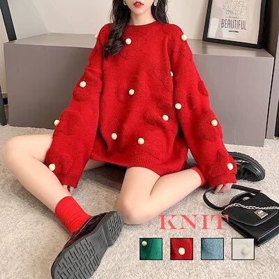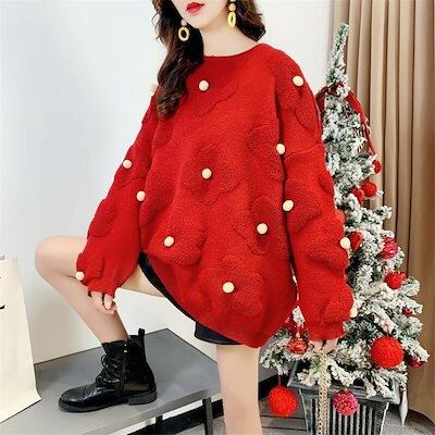 アウター 切替 ゆるっと お洒落 ニット 柄 プルオーバー ニットセーター 秋 トップス ニットソー 赤セーター 可愛い 長袖 レディース uネック ルームウェア オーバーサイズ セーター 年末年始