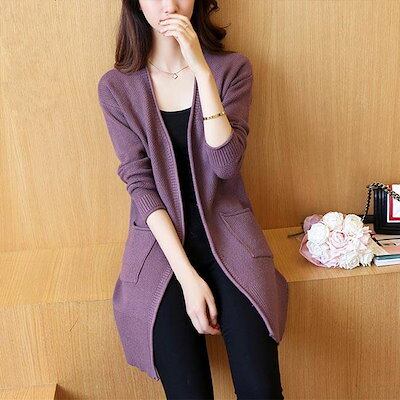 早い者勝ち ニットカーディガン 長袖 春 おしゃれ ボタンなし オフィス 無地 レディース ミドル丈 シンプル オシャレ カジュアル トップス 夏 秋 春