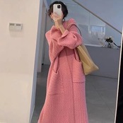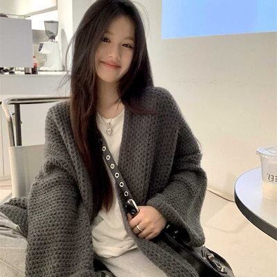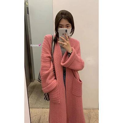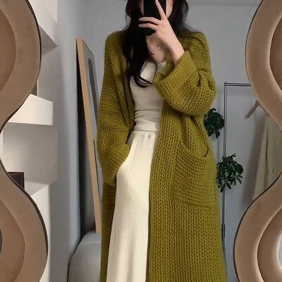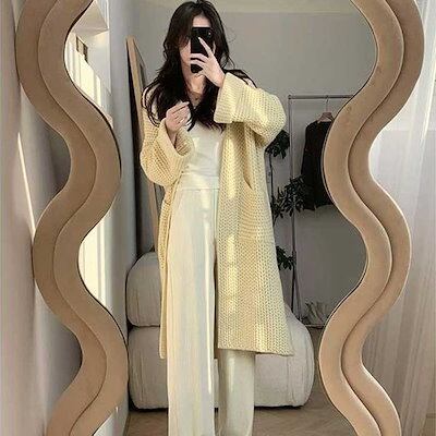 セミロング ニットカーディガン アウター レディース カジュアル ロングセーター トップス ゆったり 百掛け 長袖ニット カットソー