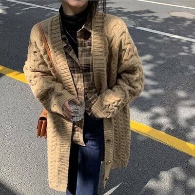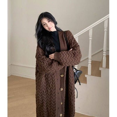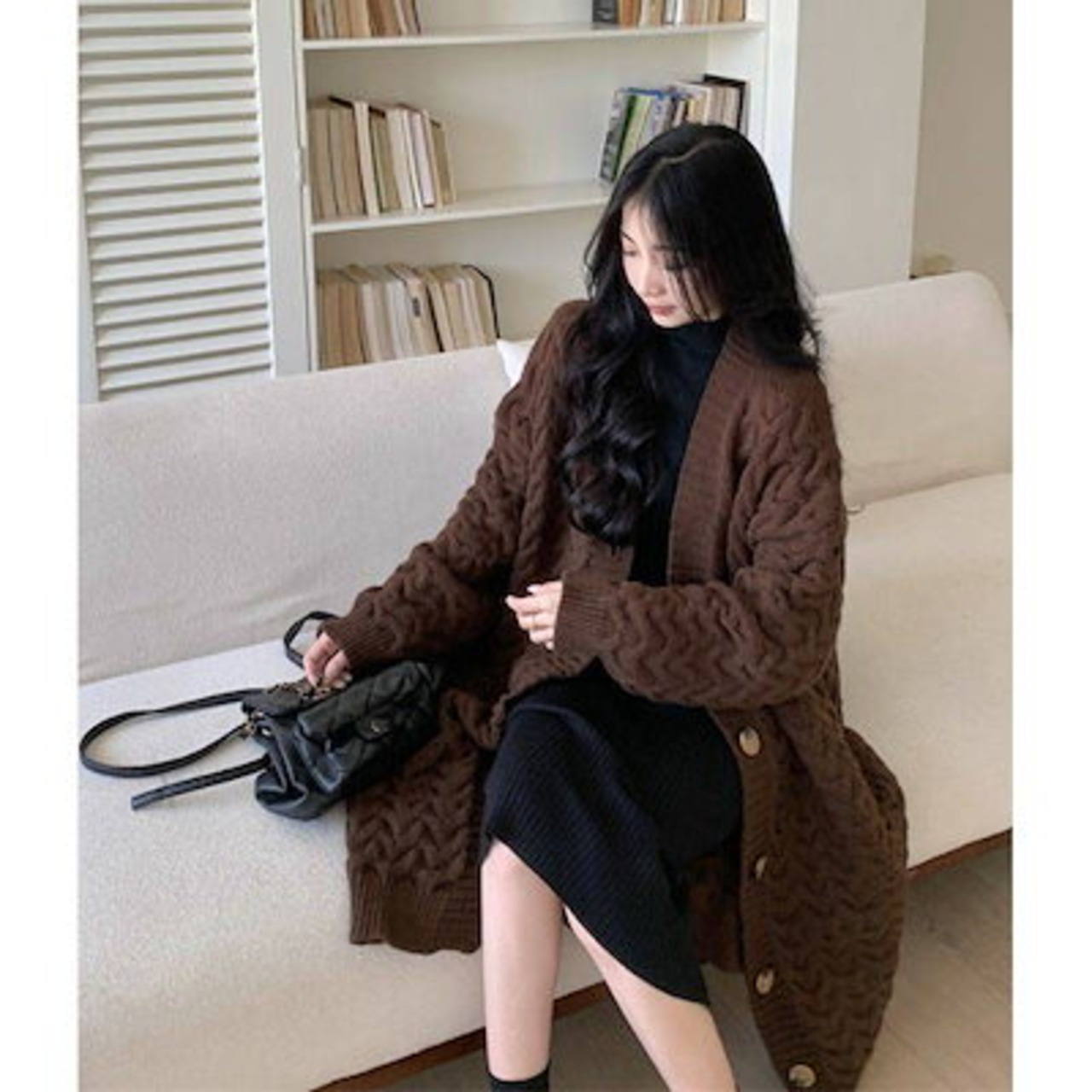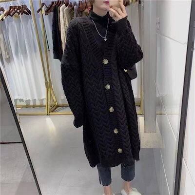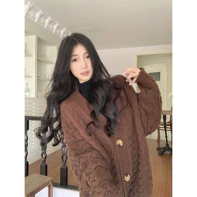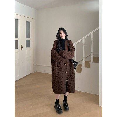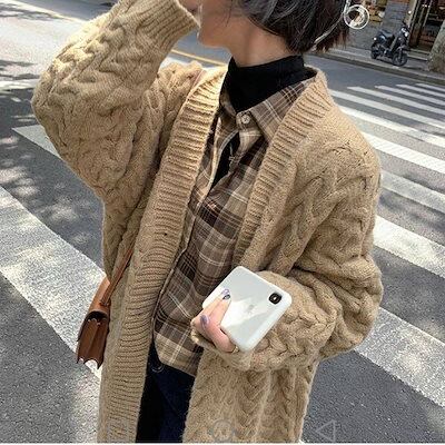 秋冬新しい ツイスト ニットカーディガン レディース ゆったり 怠惰 Vネックセーター 長袖ニット アウター カジュアル ロングセーター