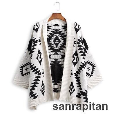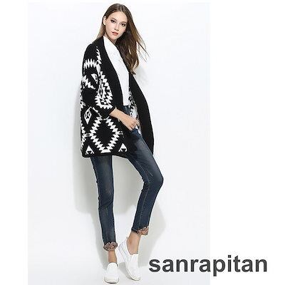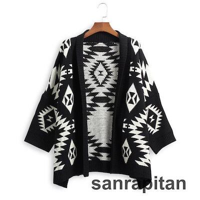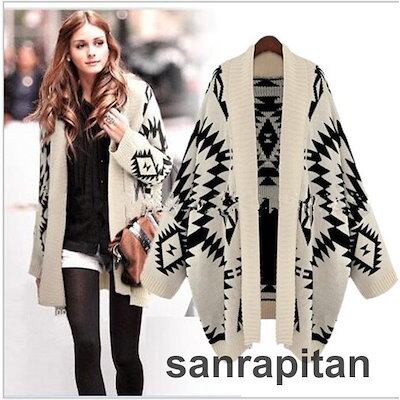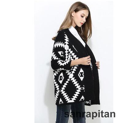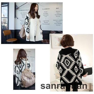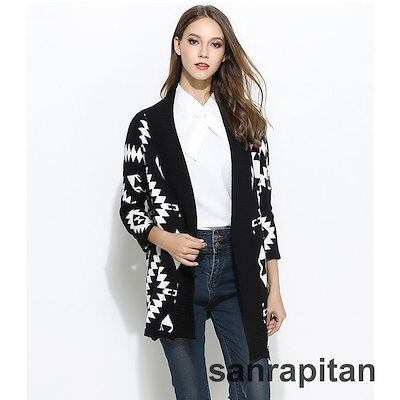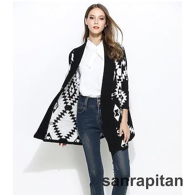 新商品!トッパーカーディガン ロングカーディガン ニットカーディガン 長袖 羽織り レディース アウター 上着 リブ仕様 おしゃれ 幾何学模様 柄 モノトーン
