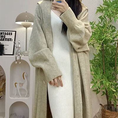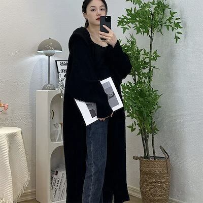 秋冬 高級感 ニットカーディガン ゆったり 怠惰風 長袖ニット コート レディース カジュアルセーター アウター ロングカーディガン