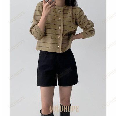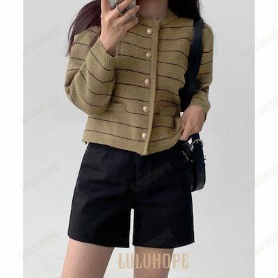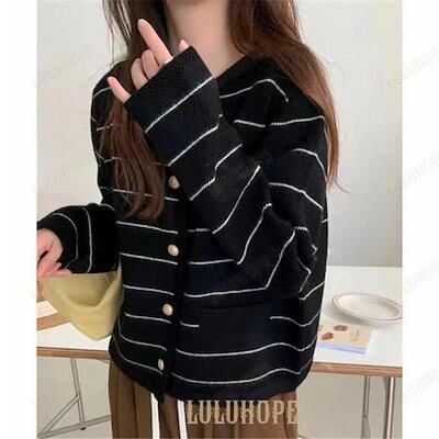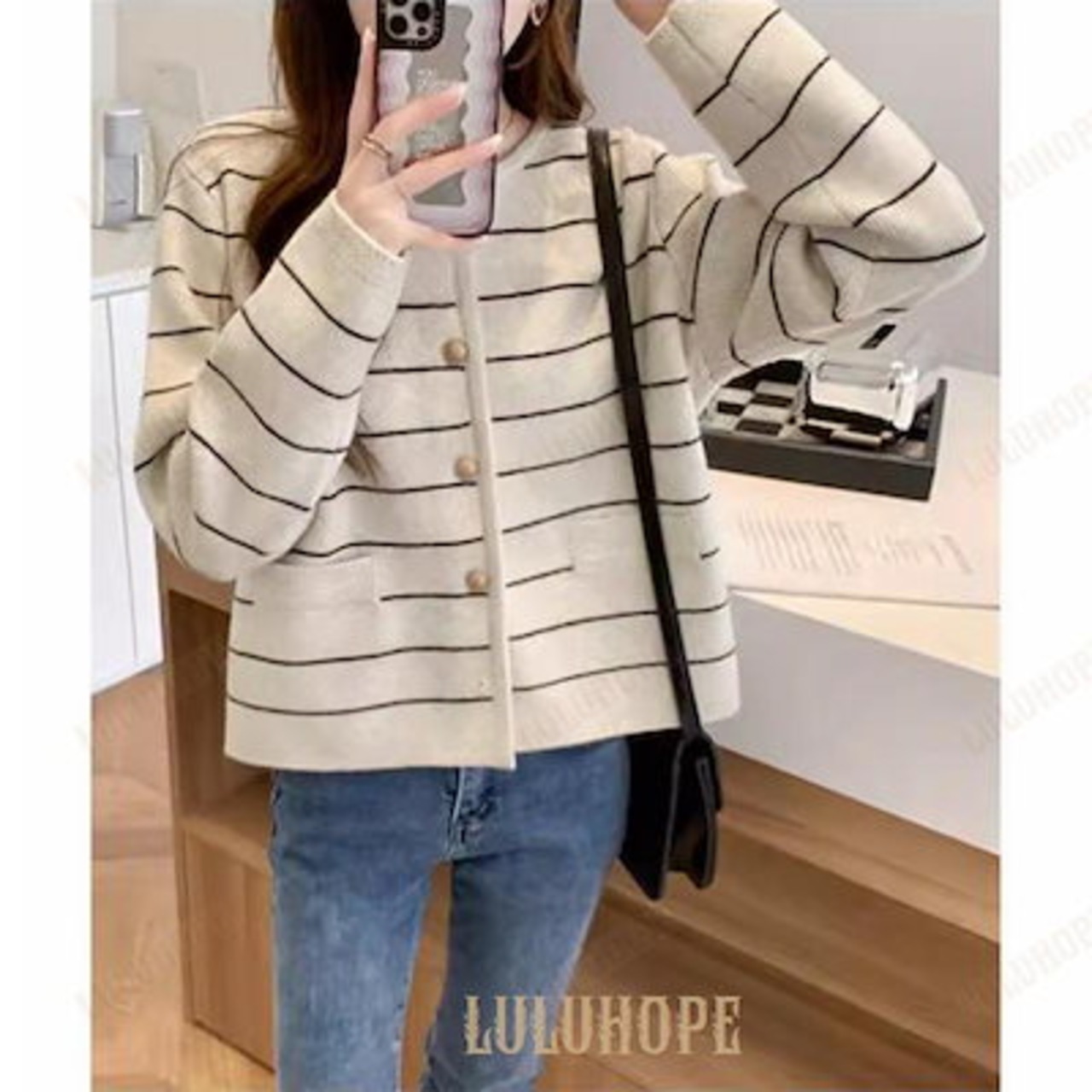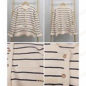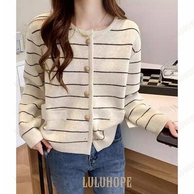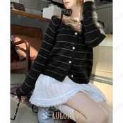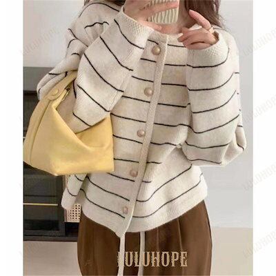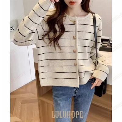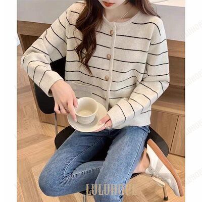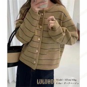 [PassionateRob0ts]細ボーダーニットカーディガン レディース
