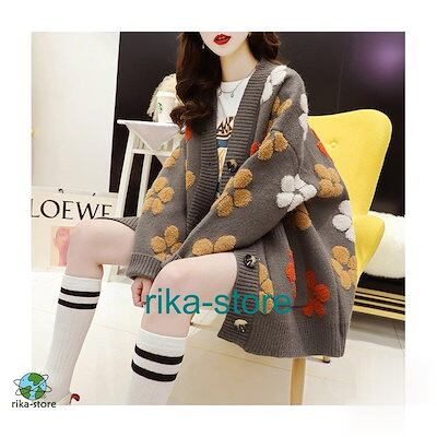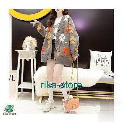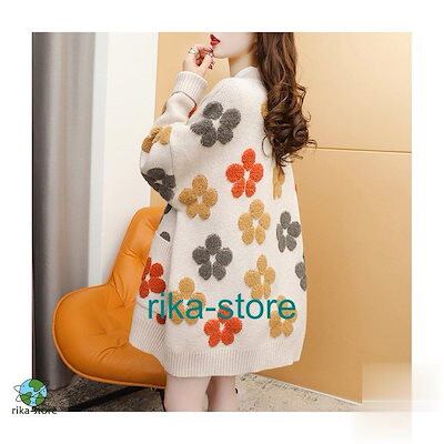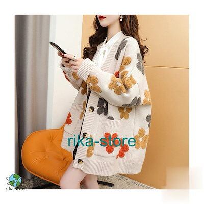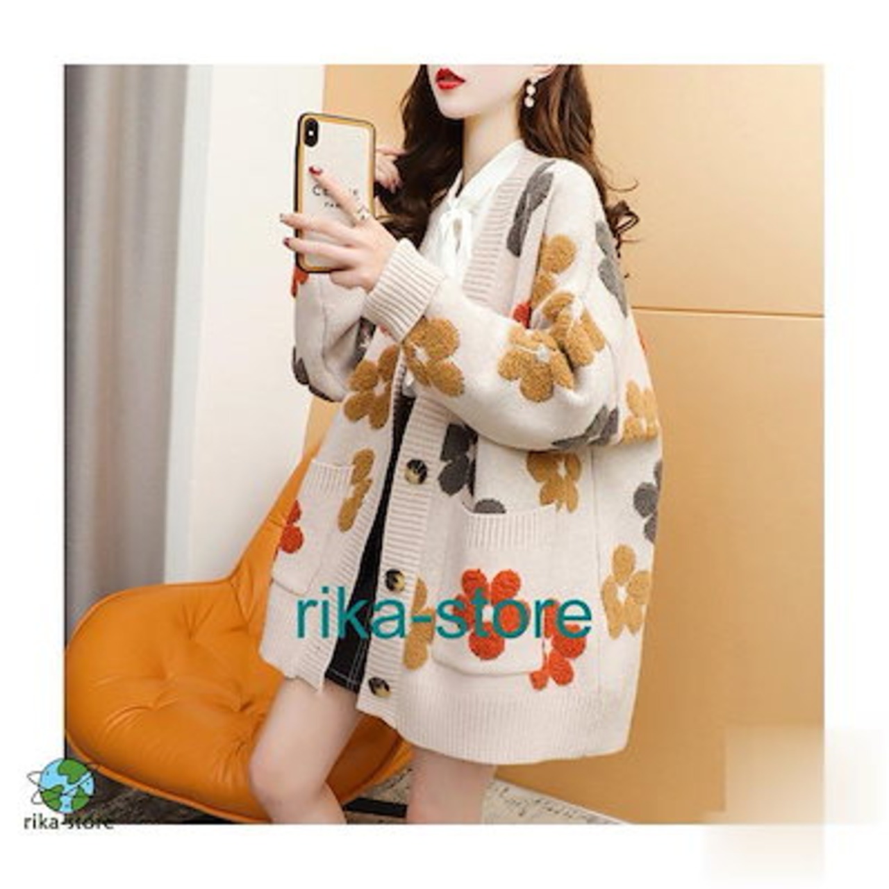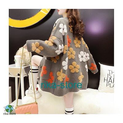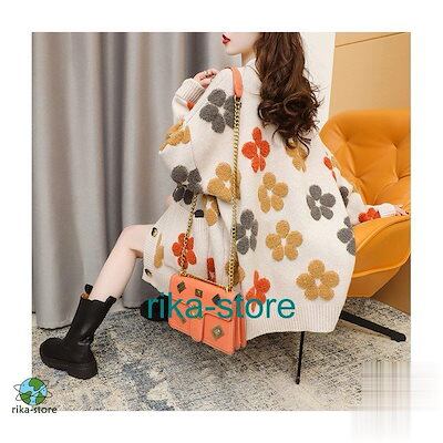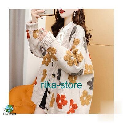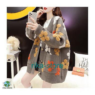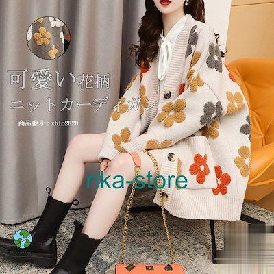 [PassionateRob0ts]ニットカーディガン ニット レディース 秋 可愛い 花柄 カーディガン セーター 長袖 秋冬 ショート ニットセーター コーディガン ゆったり 防寒