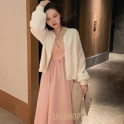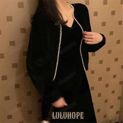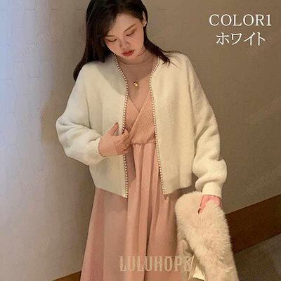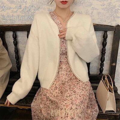 [PassionateRob0ts]カーディガン レディース 長袖 ニット コート トップス 羽織り ショート丈 大人シンプル 前開き カーデ おしゃれ コーデ 秋冬 ビーズ
